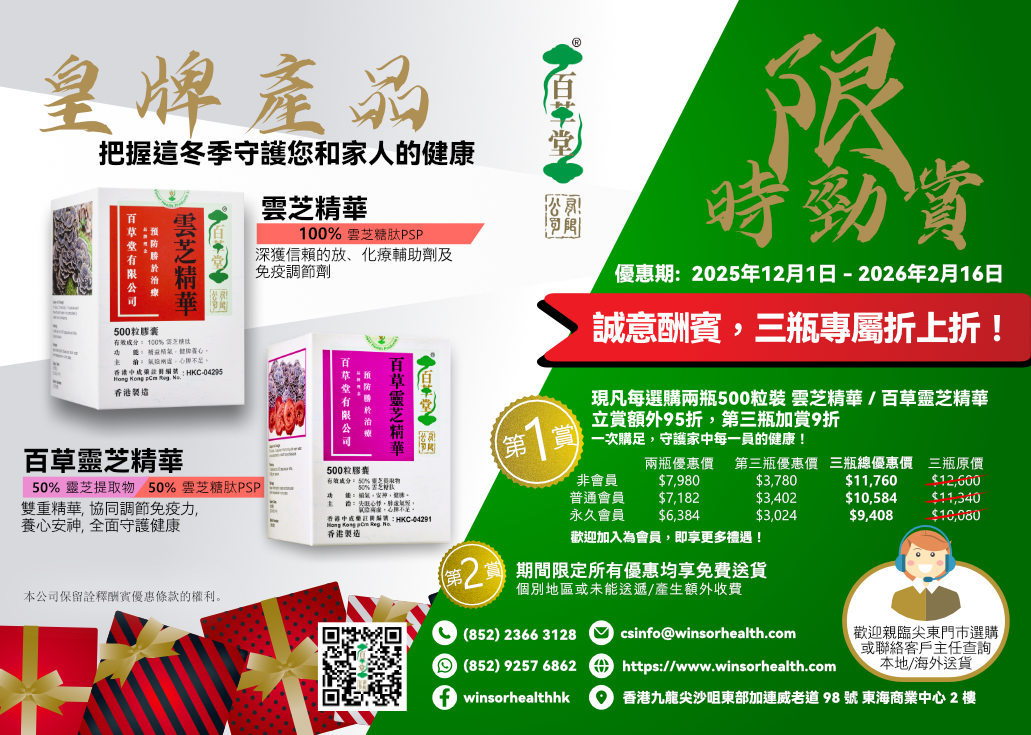 雲芝精華 選用 Cov-1 雲芝菌株,提取其菌絲體內的結合蛋白多糖 PSP。I、II、III 期臨床試驗及大量科學文獻證明,PSP 能改善免疫力,減輕化療、電療所引起的不良反應,有助病者康復。